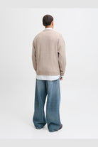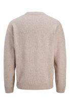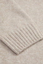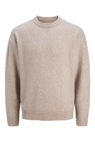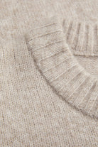 - Beige langermet strikke‑genser