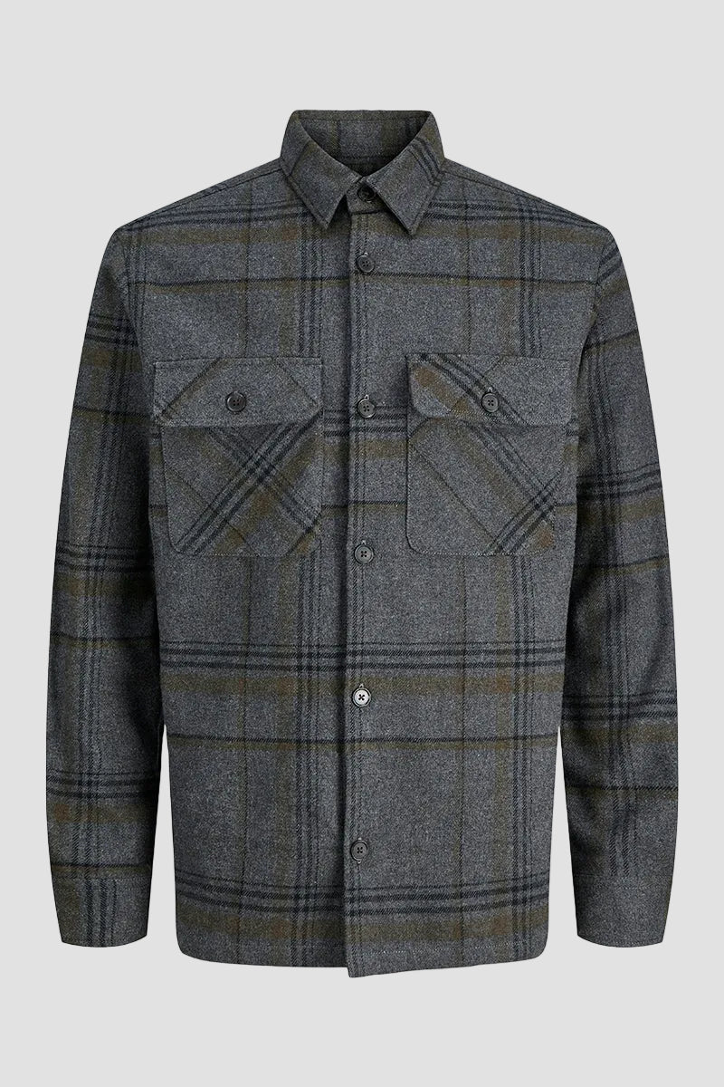 - Mørkegrå rutete overshirt med lange ermer
