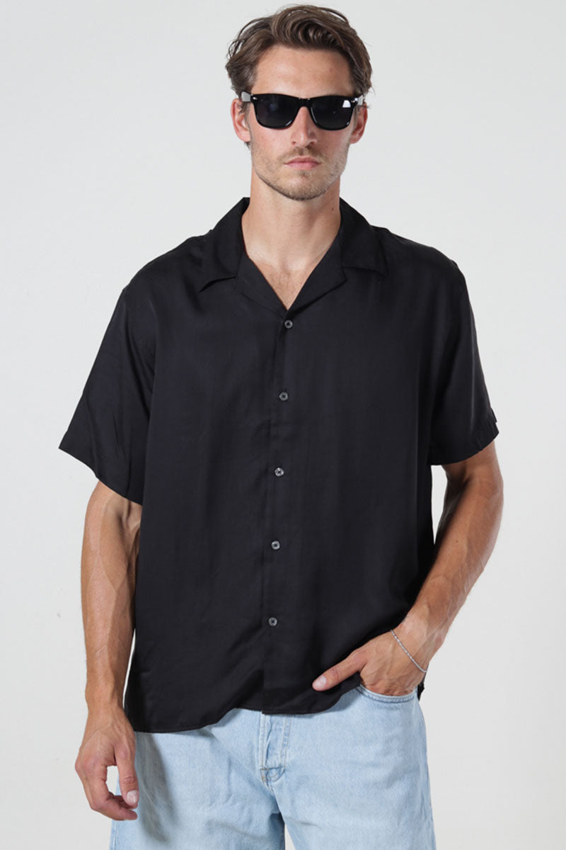 Charlie Satin SS Relaxed Fit Resort Shirt Black