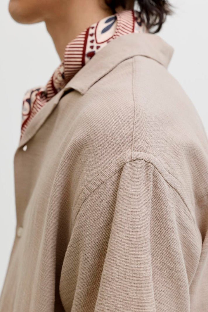 Denne lette og luftige resort-skjorten passer perfekt til en stilig sommerantrekk. Den har en avslappet passform med kortermet design og en karakteristisk resort-krage som gir et avslappet, men raffinert preg. Stoffet er vevd, noe som gjør det slitesterkt og robust uten å strekke seg, og gir skjorten en solid kvalitetsfølelse.