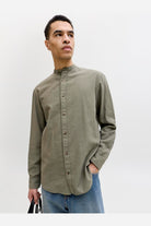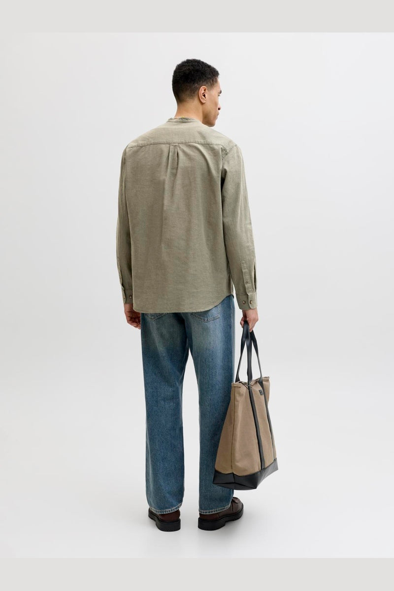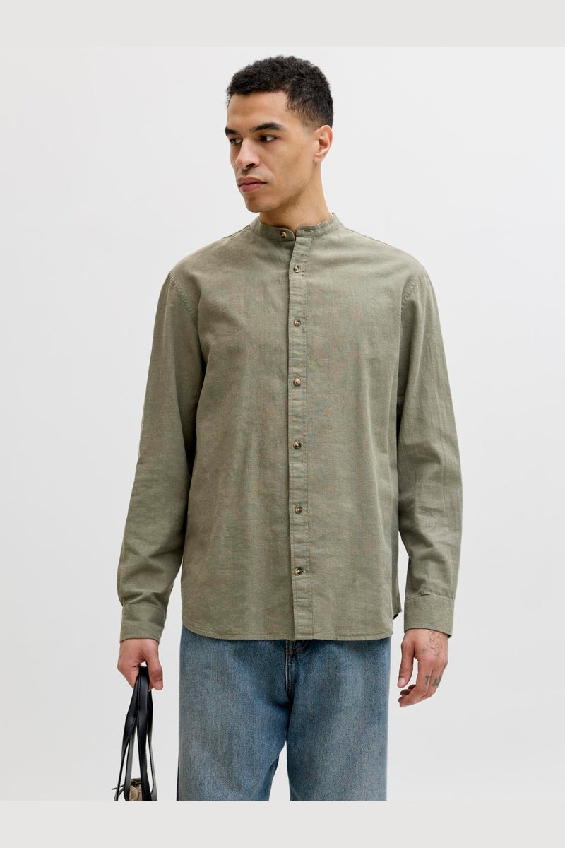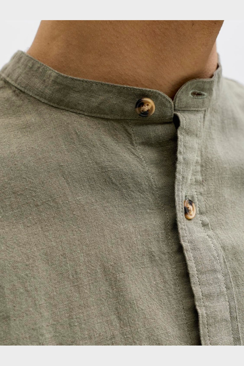 Summer Shirt Linen Blend Band LS Dusty Olive