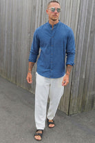 Summer Shirt Linen Blend Band LS Navy Blazer