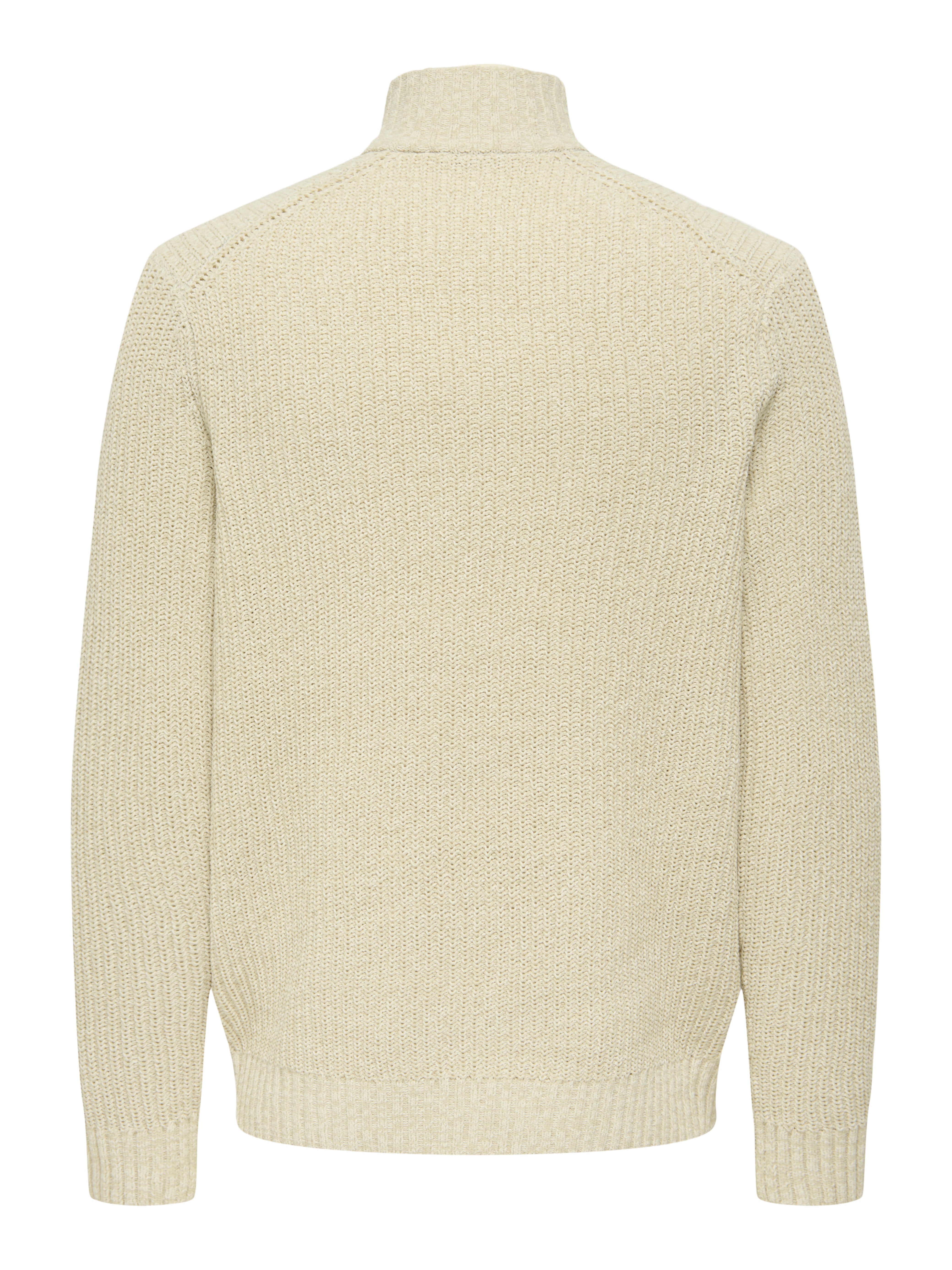 - Grovstrikket genser med høy hals og halv glidelås