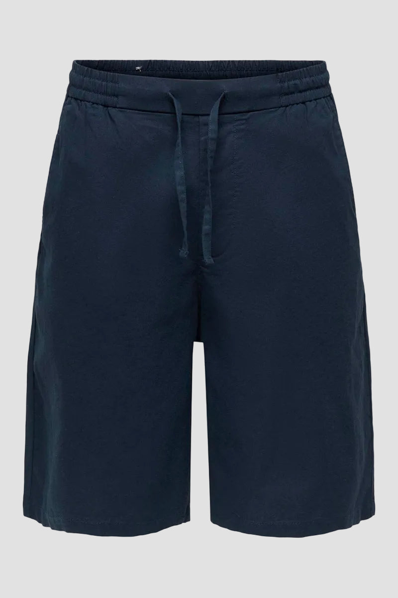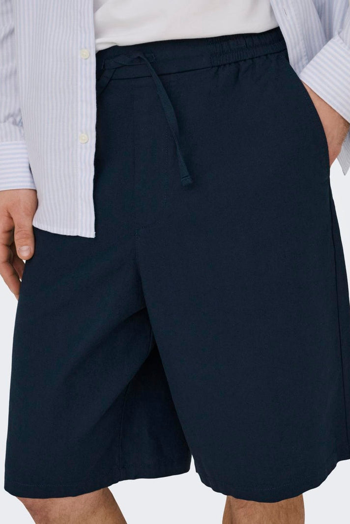 Daves Wide Cotton Linen Shorts 0007 Dark Navy
