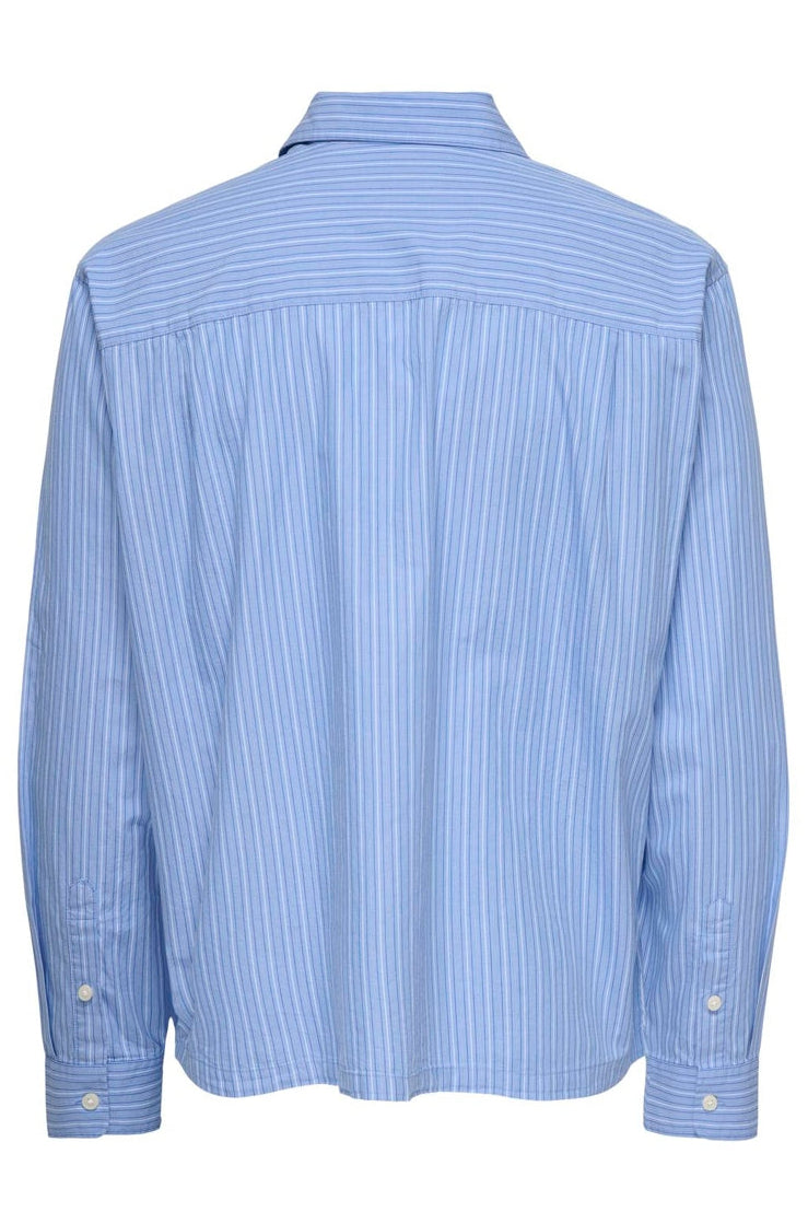 Denne relax fit skjorten er laget i 100% bomull, noe som gir en myk og behagelig følelse. Den lange ermen og den klassiske kragen gjør den ideell for formelle anledninger eller en avslappet hverdagsstil. Skjorten kommer i en rolig himmelblå tone med stripemønster som tilfører et subtilt visuelt uttrykk.