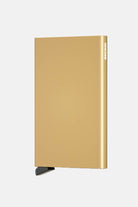 Secrid kortholder i elegant gullfarget design. Kan oppbevare opp til fem kort, som lett kan dyttes opp, så du enkelt kan komme til kortene dine. Beskytter mot slit og RFID-scanning. Fremstilt i aluminium med et minimalistisk uttrykk. Kortet måler: 10,2x6,3x0,8 cm og har en vekt på 40 g.