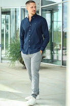 Oxford Stretch Plain L/S Navy