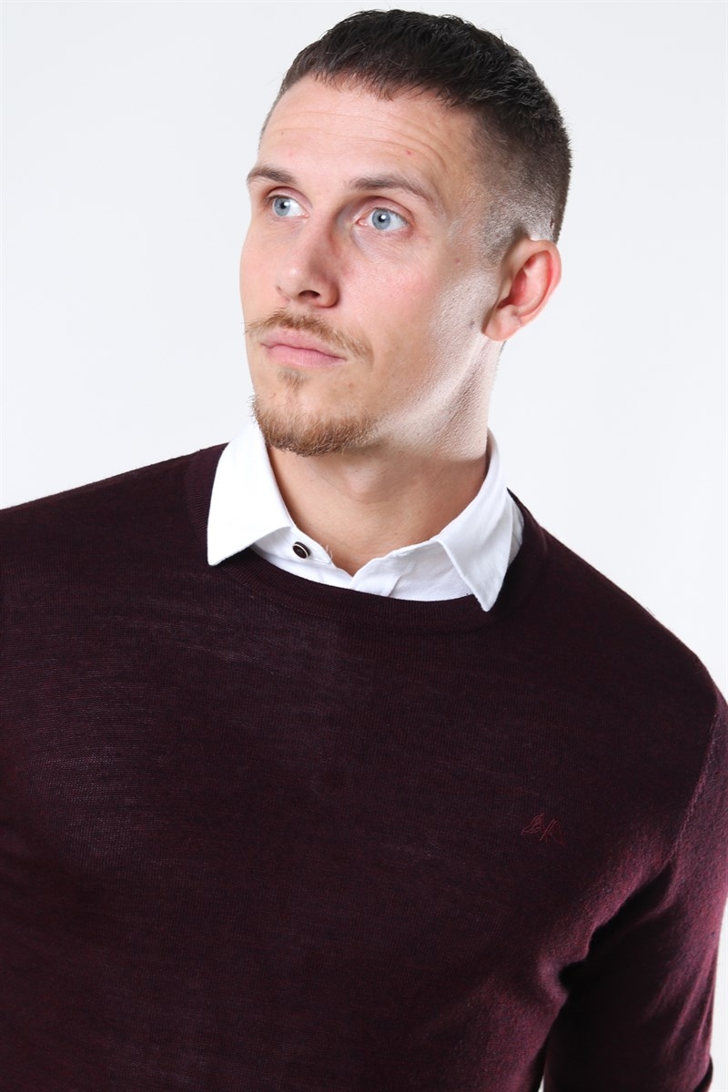 Lindbergh Merino O-Neck Strikke Dark Bordeaux